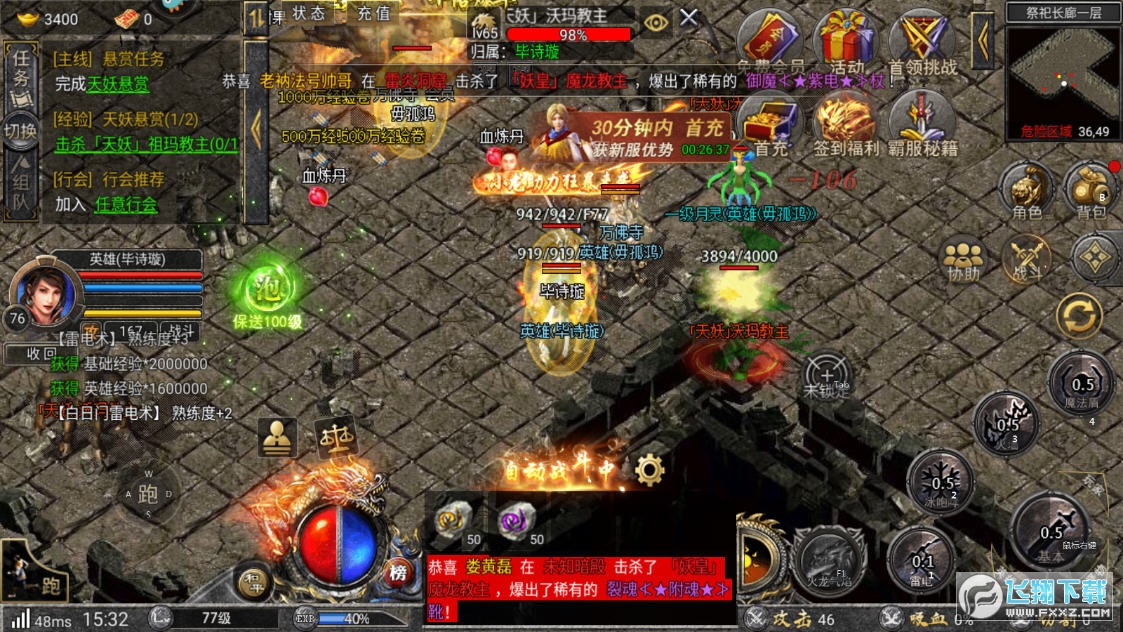 2、超高自由度,万人同屏挑战boss,厮杀矿洞,王城争霸,万人同屏抢boss,再现经典的回忆。