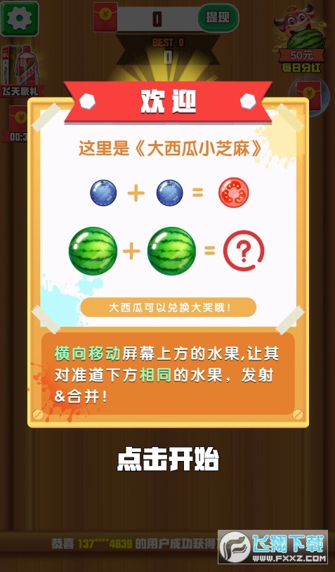 大西瓜小芝麻红包版是款人气超高的水果合并游戏,在网上也是超级的火爆,简单合并,完成各关卡挑战,领取红包奖励,超多玩法体验,沉浸在游戏之中,简单操作方式,让空闲的时候不会再无聊!