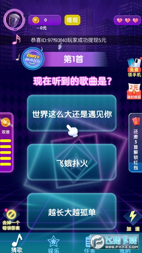 2、用户们可以在手机上来猜歌赚取更多收益,喜欢听歌朋友都可以来挑战;