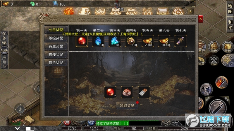 上线就送满V等特权,更有赤月套装、火龙套装等你领取;
