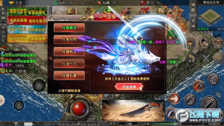 3、技能自由组合,炫酷特效眼花缭乱,战斗经验每天上不封顶,成为全服最强。