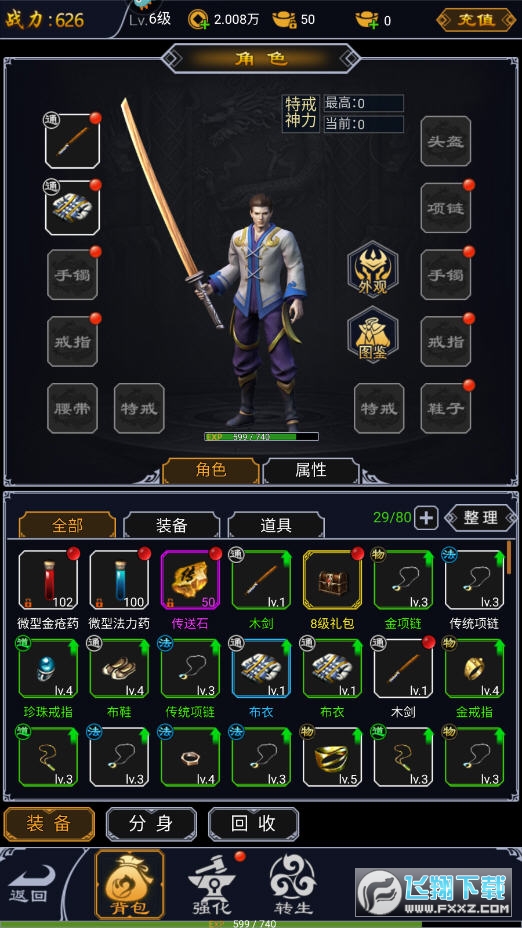 4、创新多重养成体系,战宠、转生、分身、心法、时装等提供属性助力,装备精华更可进化传承唤醒特定属性,激发巅峰之路。