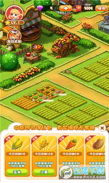 红包农家乐红包版是一款很好玩的!游戏中玩家不断种植经营农场就能轻松赚取大量现金红包,红包累计即可提现,游戏玩法简单,每天动动手指就能轻松赚大钱,喜欢的朋友快来下载吧!