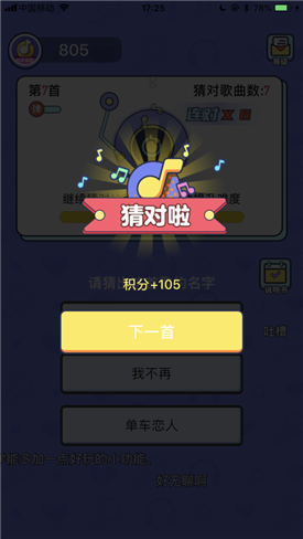 快乐猜歌,精挑细选了2000多首当代流行歌曲、经典老歌、怀旧歌曲、影视金曲等知名歌曲。可以在闲暇之时,坐等公交之时,无聊等空闲时间畅玩,一边欣赏音乐,一边体验最有趣的脑力挑战游戏。快乐猜歌是一款可以让人放轻松,舒力,避免神经紧张的小游戏。
