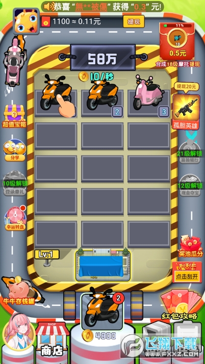 2、用赛事获得的金币来升級你的摩托车,改裝最与众不同的样式突破自我;