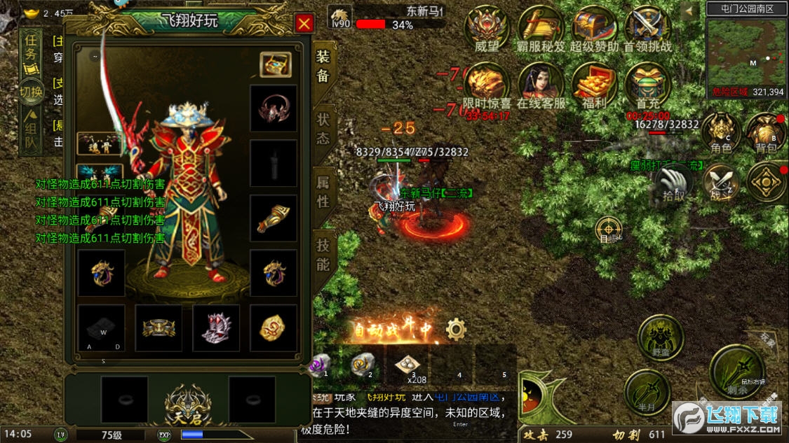 2、所有装备均可以打怪获得,击杀霸主极大概率掉落武器衣服。