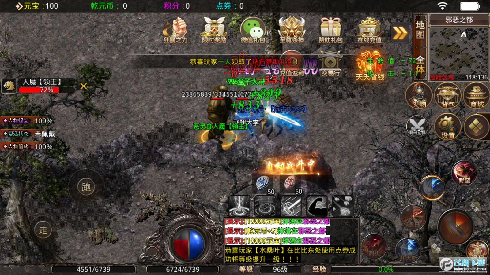 2、无需复杂操作,可以尽情的体验轻松打怪升级,装备买秒回收,超强新技能等你自由体验!