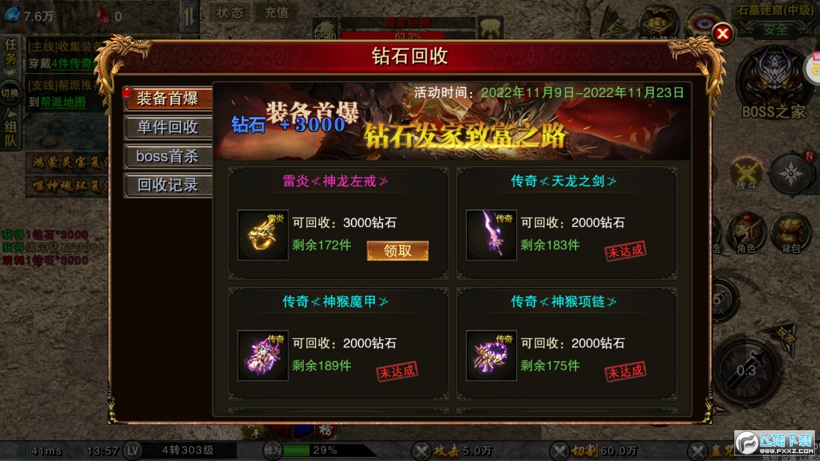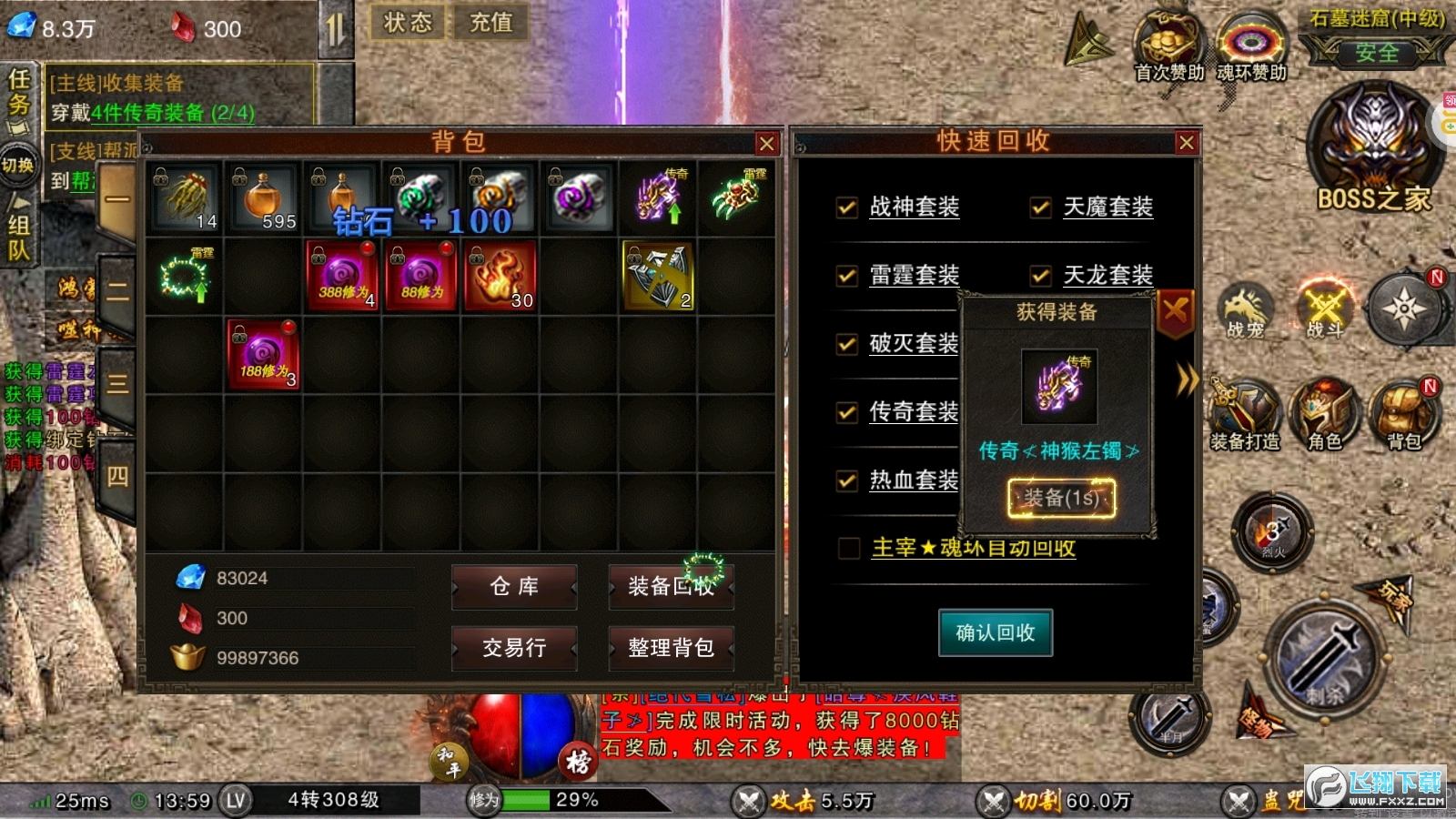 新手玩家赠送游戏礼包,简单上手体验,传奇游戏场景代入感超强。
