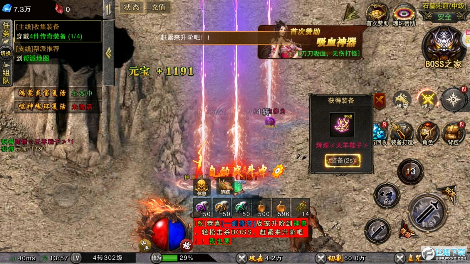战斗的画面很炫,送的神装穿上,简直帅呆了。酷毙了。