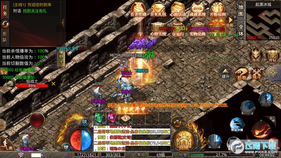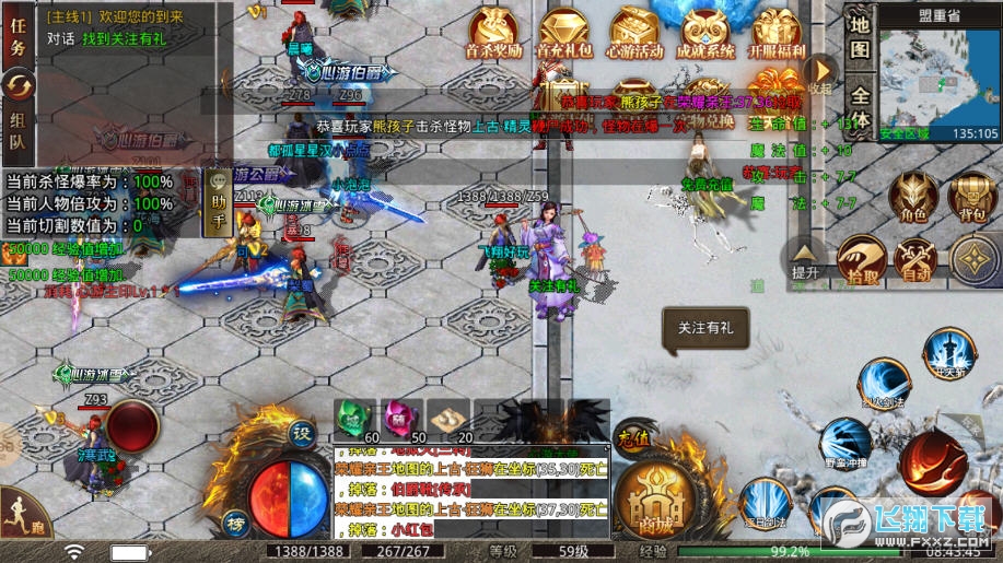 5、游戏升级快,击杀boss的掉落率高,在暴击中夺取屠龙,增加人物的属性战斗能力。