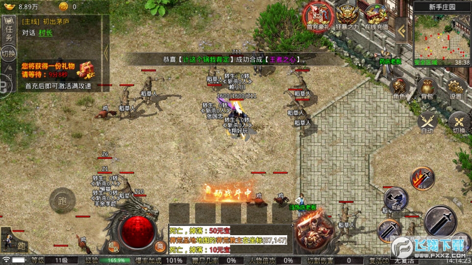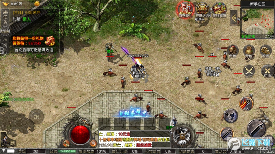 玩家前期可依照主线任务进行等级提升, 打怪和泡点都能获得经验(技巧:击杀古代兽王可快速升级)必抢,血少,经验多
