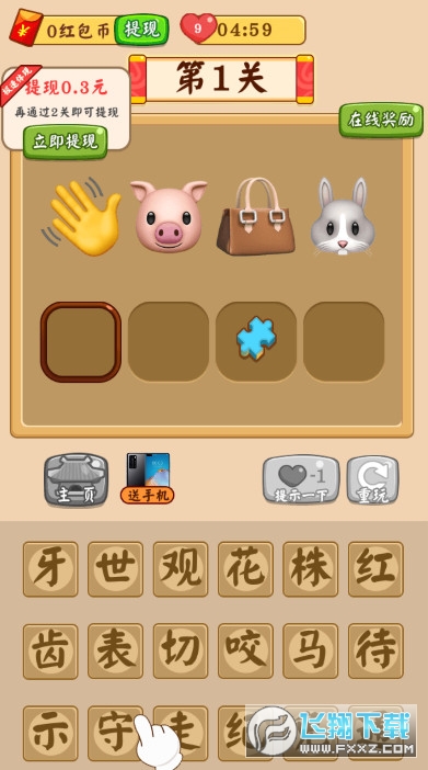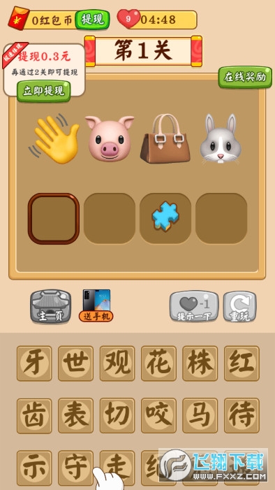 超级好玩的成语猜谜小游戏,游戏画风非常细腻诱人,根据给定的图片猜出正确的成语,通过不同层次的答题,还能赚零花钱!