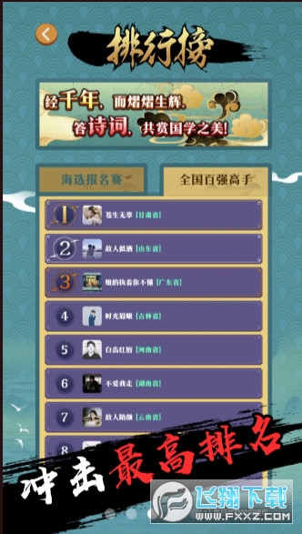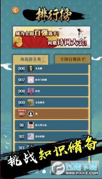 每个场次的竞赛,都会记录您所在排名。无论是地区比赛还是全国比赛,您每次答题都会看到自己的排名提升,成功超越其他选手。您会不会成为全国榜上的那前100名国学高手?