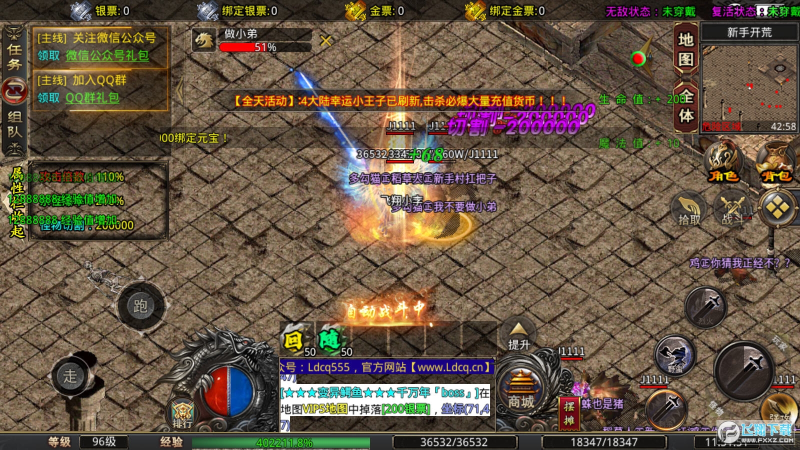 各种活动不断,激情、偷袭异界、截杀神王、必爆充值、疯狂大乱斗全天循环开启