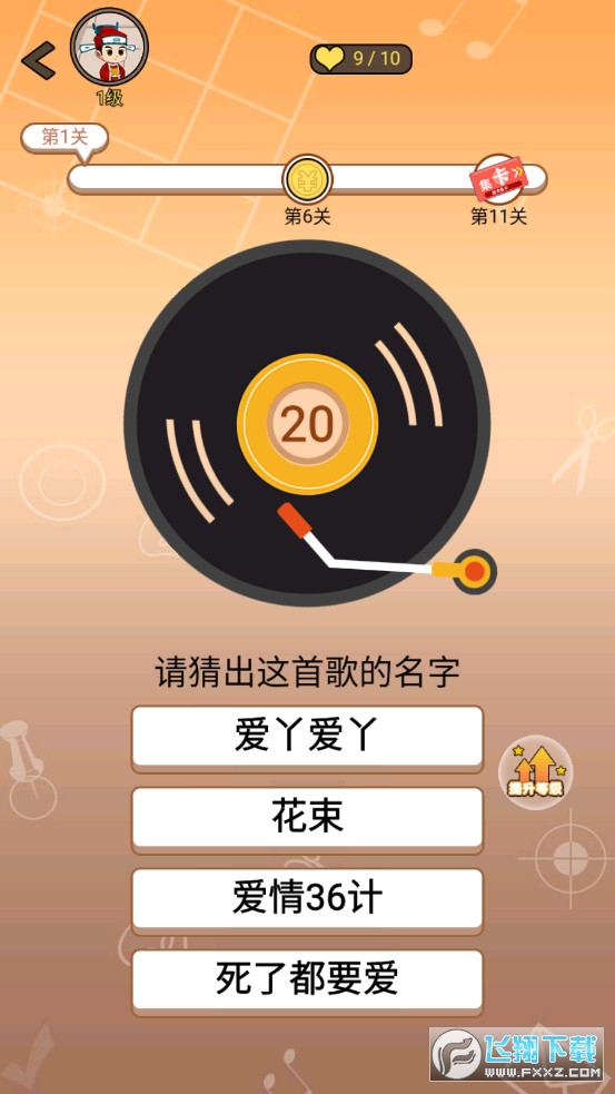 1、简单好玩的猜歌游戏,每关都有不同的任务,可以不断的重复前奏,猜出结果;
