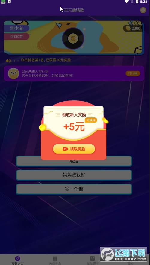 天天趣猜歌是一款趣味十足的休闲小游戏,尽情的在游戏中挑战,凭借你的能力,猜出游戏中的歌曲,完成游戏中的任务,还会为玩家带来丰厚奖励。轻松自在的在这游玩,体验起来完全没有任何限制,你想怎么玩就怎么玩。简单有趣的猜歌玩法,操作简单,体验轻松,随意自在的游玩,让玩家的枯燥生活变得精彩有趣,而且赢下游戏中比赛的胜利,玩家还能领取到丰厚奖励。