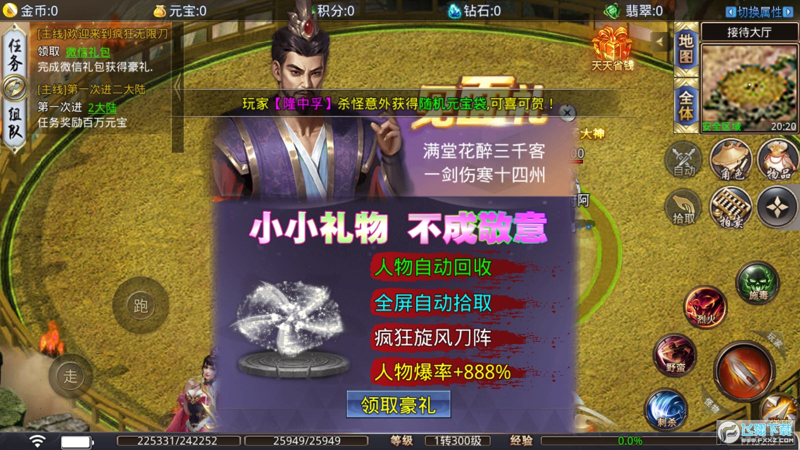 欢迎来到零度疯狂无限刀,本服点击小地图可直接传送进服先领取豪礼和加群豪礼,