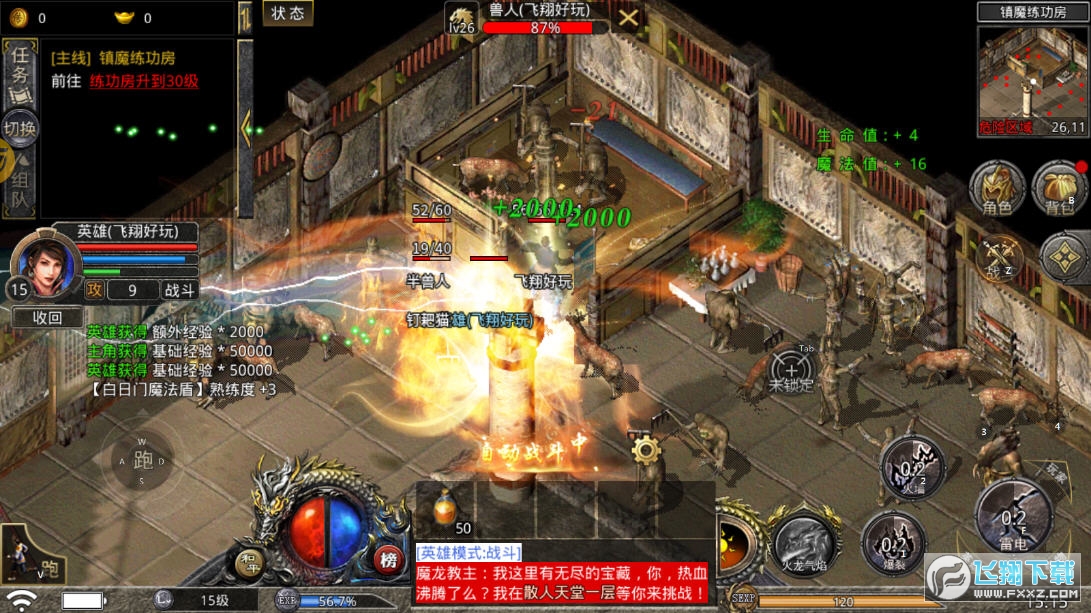 3、可以邀请自己的兄弟们进行热血争霸,一起组队开黑,能够轻松的消灭游戏中的boss,拾取各种装备。