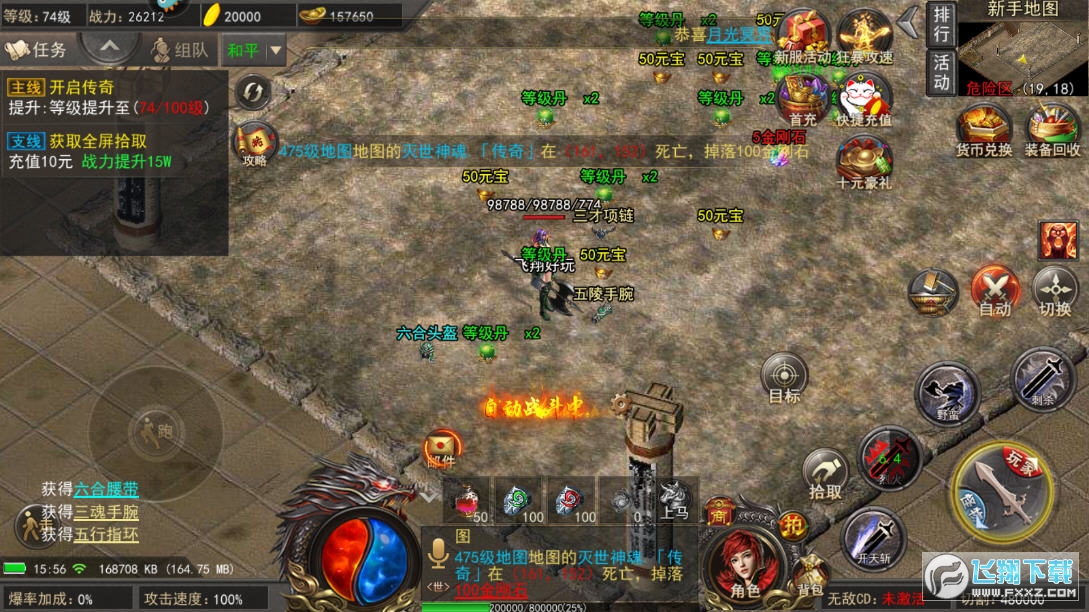 2、支持挂机模式,让你无需耗费时间,就可以获得大量的金币以及经验,快速升级。
