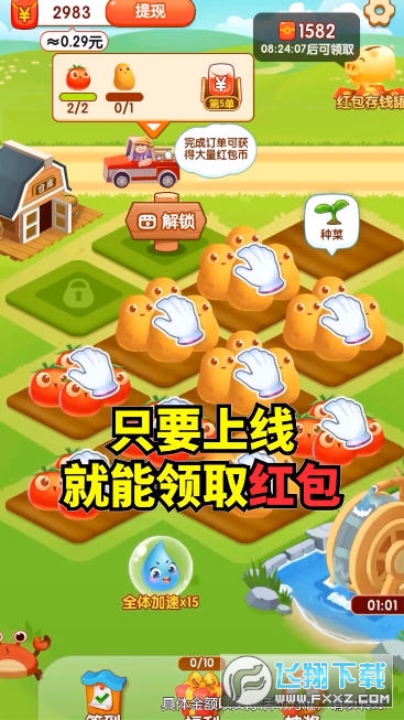 阳光小农场红包版里面的极简画风给人以畅快体验,每个时间段都需要对光果蔬菜进行精心照料,确保在收成季节到来时获得惊喜奖励,整个的玩法内容精彩无限,每一次的乐趣都超乎想象啦!