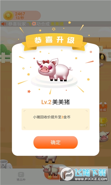 2、玩家能够使用金币来扩建农场让农场中能够获得更加多空间来不同的小猪。