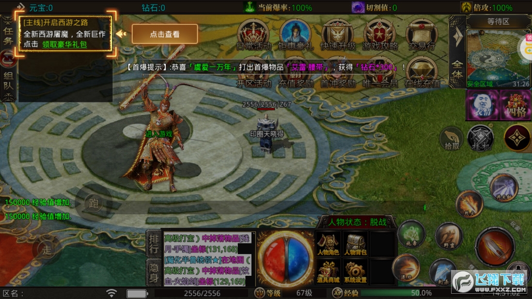 【2】免费领取200w金币、1000元宝、满背包、满仓库、施毒术、裂地斩、追日剑法、等海量道具。