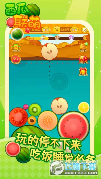 西瓜联萌是一款可以拿的经典西瓜合成游戏。触屏点击操控让水果掉落到合理。尽情享受水果合成无限乐趣,空闲中不无聊,将掉落水果完成合并,趣味火爆欢乐合成等你加入,赶紧邀约好友一起拿红包吧!