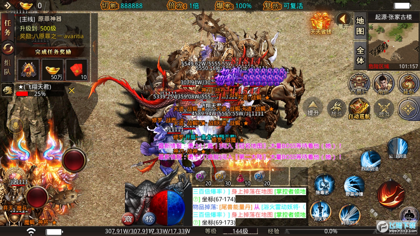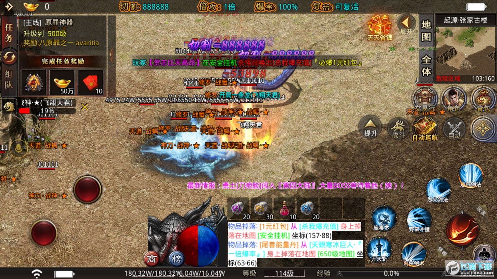 全屏光柱非常的热血,秒杀各种小怪,极品装备和稀有装备等着你来领取。