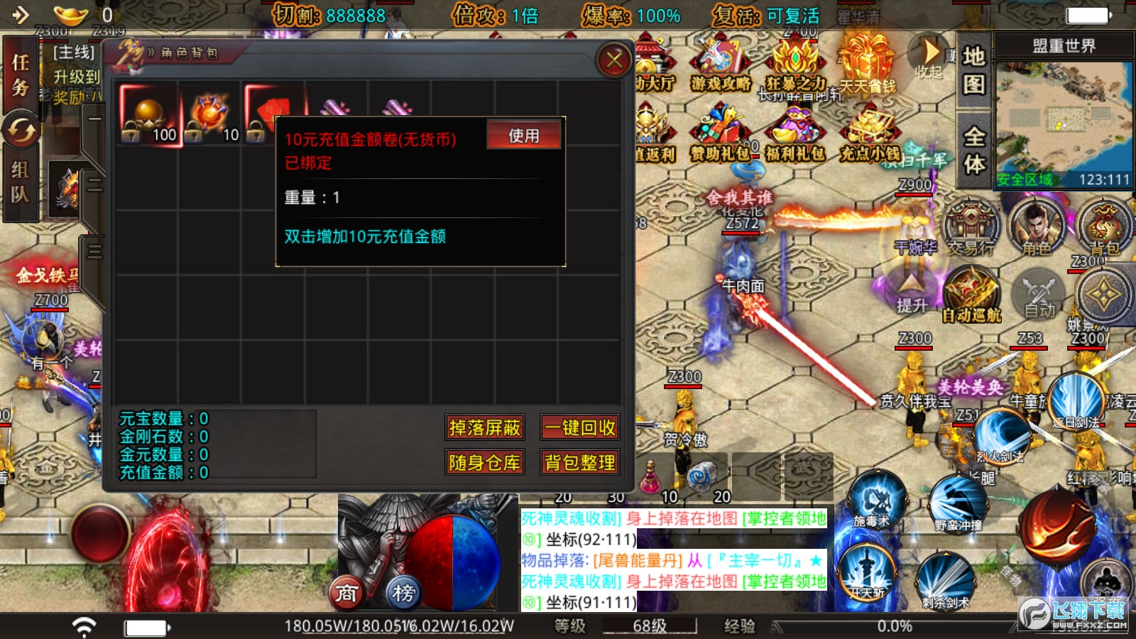 3.最后再强调一次、货币、材料、充值、装备、全部都能爆到!!都是免费搞到爽!
