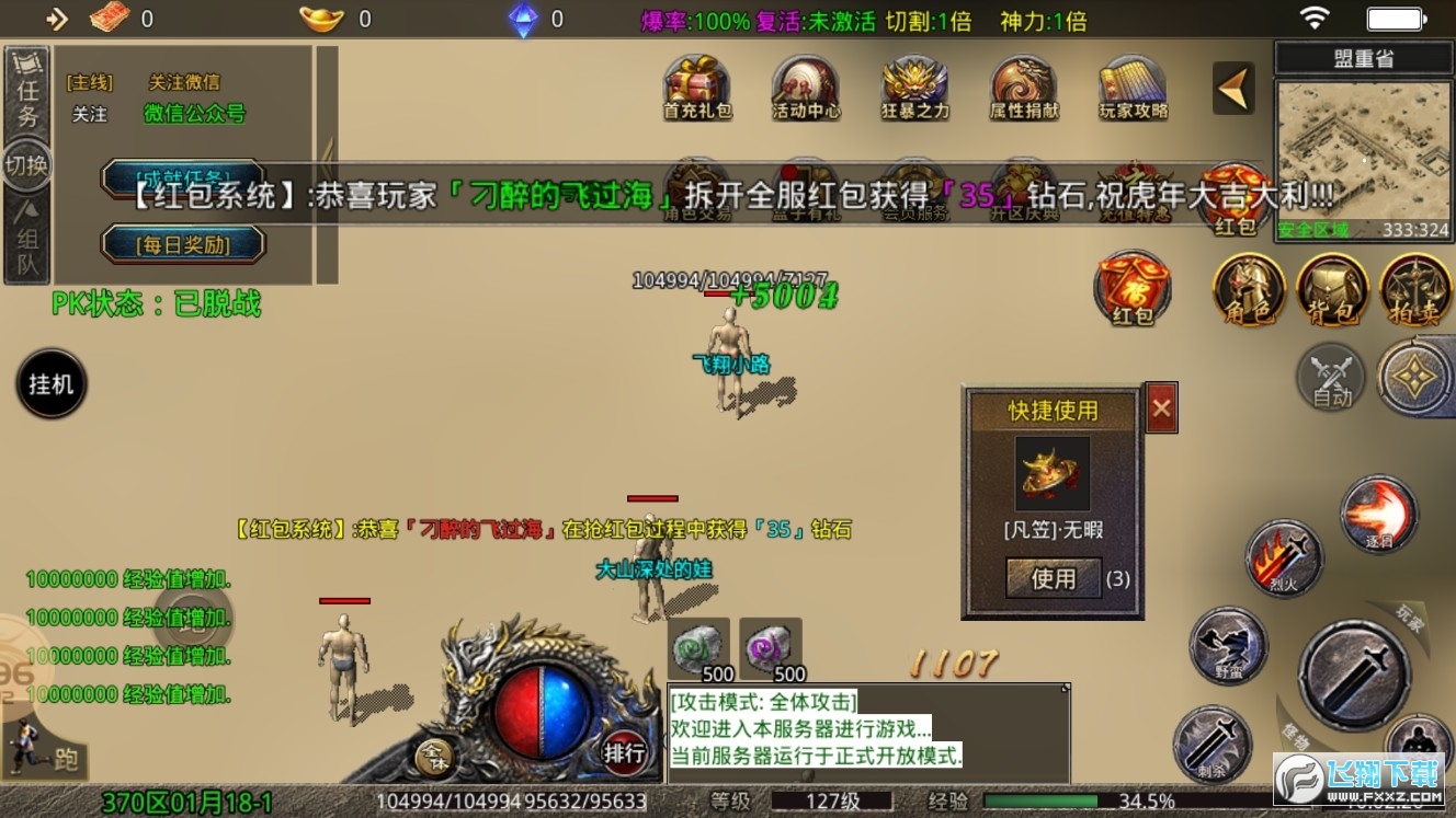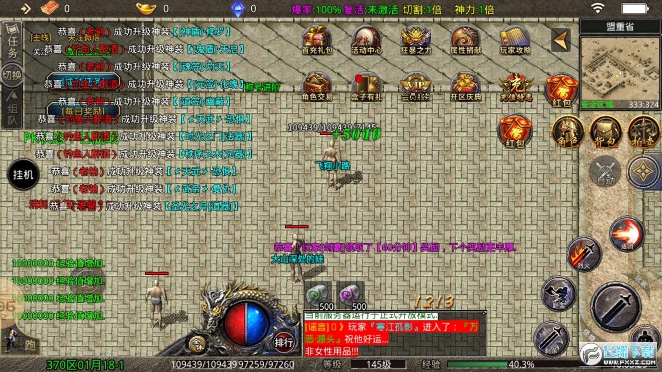 刺激打宝激爽无比,极品装备狂爆不停,玩家交易自由随心,装备回收一秒赚金