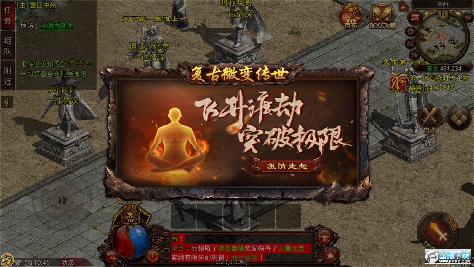 做任务、刷副本、参加活动、打怪练级,野外的黄金挂机点和神界挂机,都能助你战力飙升!游戏内不出售直接加经验的道具,体验公平PK!
