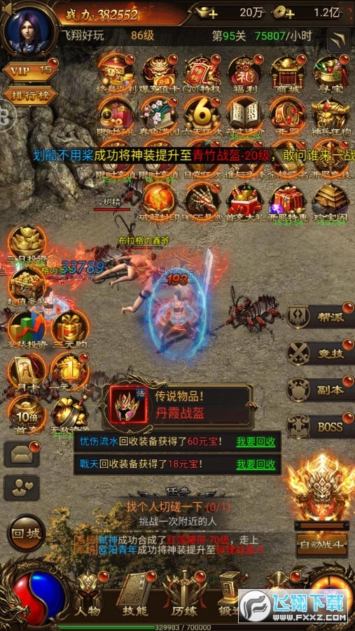 1、丰富传奇活动,野外激情竟技,再续传奇盛世辉煌,提升角色技能属性;