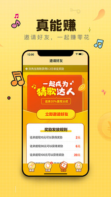 邀请好友,一起赚零花。猜歌的快感,收获的喜悦,都更想让他知道。这一次,是达人的大胜利。