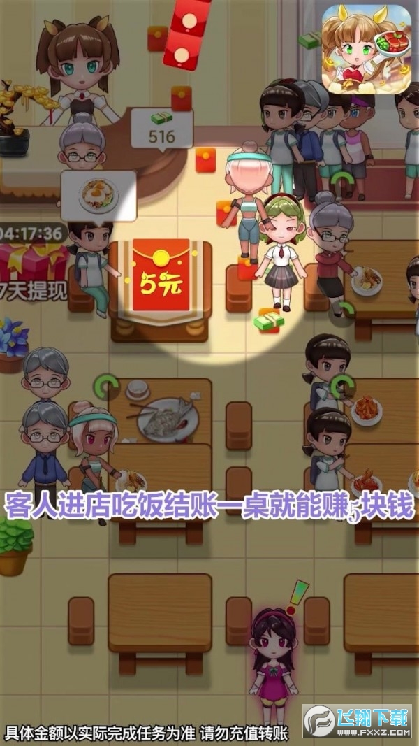 全民开饭店是一款可以开饭店赚钱的游戏。全民开饭店游戏里,玩家将经营一家小饭店,招聘厨娘为你服务,接待客人前来消费赚收益,红包直接到账,提现方便。最重要的是每天都能领取红包!