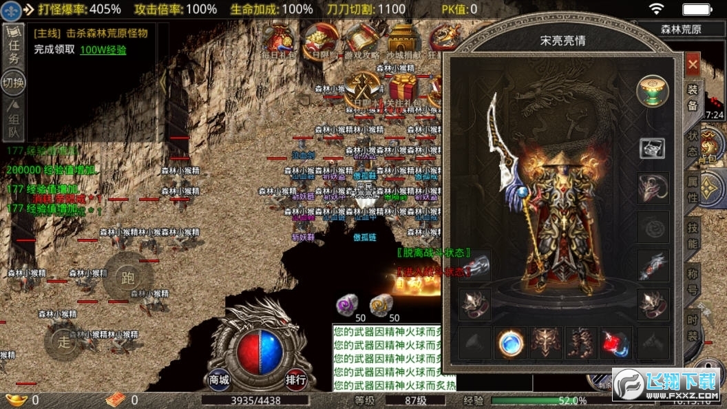 拥有超高游戏爆率,不用氪金就能享受土豪玩家待遇,登录就可以领取经验以及礼包。