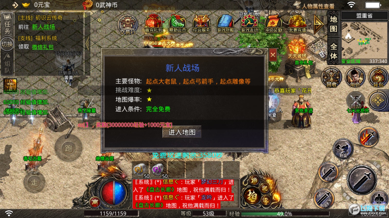 【首充礼包】免费开启可获得:至尊会员+大量元宝+10倍泡点经验+麻痹复活战鼓+1.2倍永久攻击、爆率倍数+自动回收!