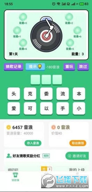 1、每猜一首歌会消耗1个歌曲能量;