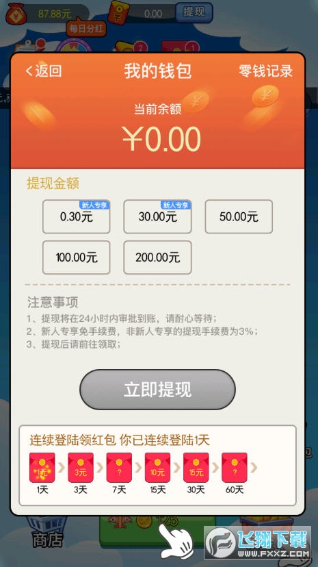 2、新人专享免手续费,非新人专享的提现手续费为3%;