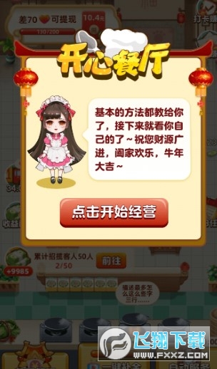 开心餐厅红包版app还是类的手机赚钱小游戏。赚钱是真的,自动招揽顾客、升级、增加厨娘、升级装饰、获取好评,都是可以赚钱的,而且操作集齐简单,主要根据任务指引就能完成。