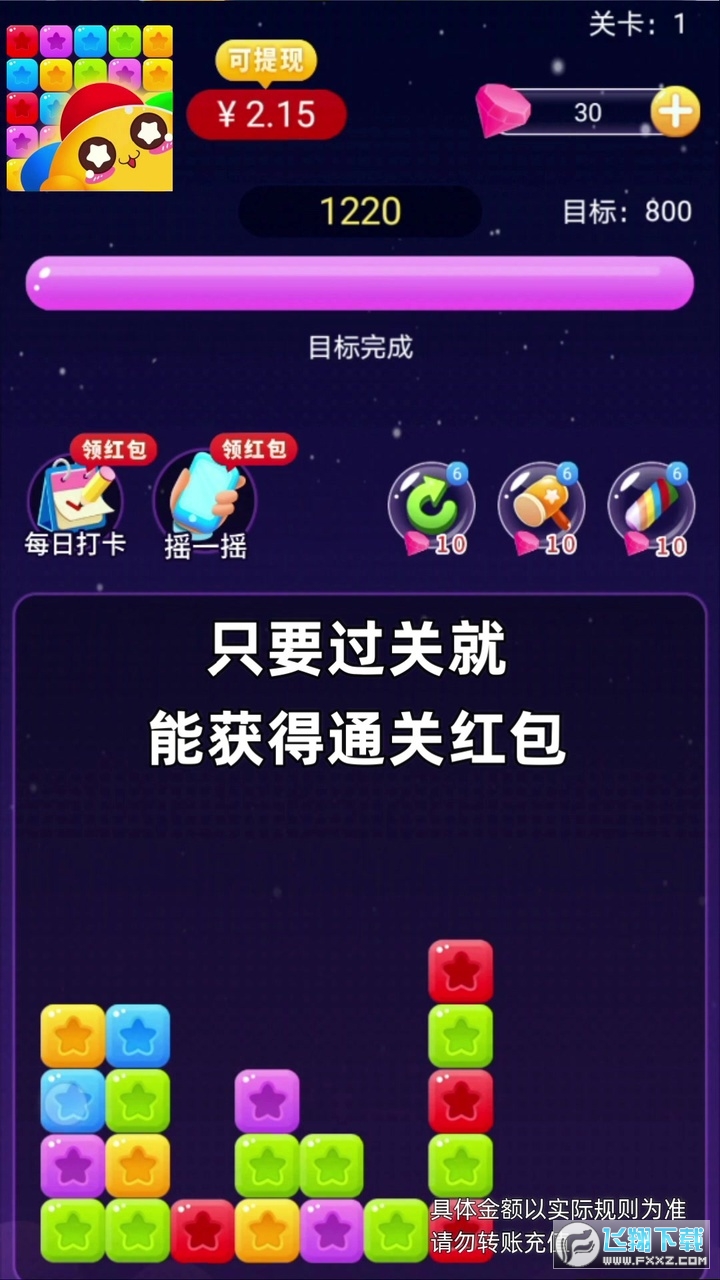 3、消除方块越多获得的分数也就越高,更好的闯关获得红包奖励。