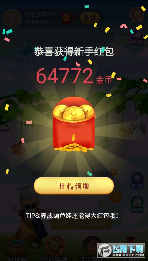 4、玩家上线领取葫芦娃树苗,为葫芦娃树苗浇水施肥让它长大就可以获得红包。