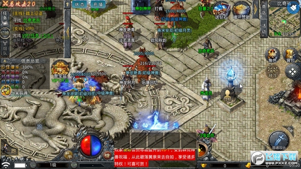 5、海量副本,兄弟一同组队挑战,杀boss,刷神器、宠物等,支持极速回收