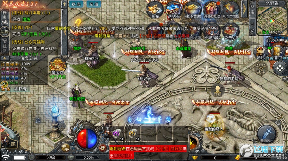 3、精致细腻的画面,炫酷华丽的特效,决定流畅,完美体验传奇乐趣。