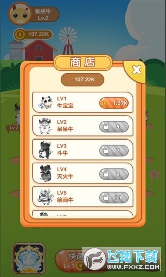 2、为了能够饲养更多的小牛,你必须去扩大升级养牛场的规模,就锁更多品种的小牛。