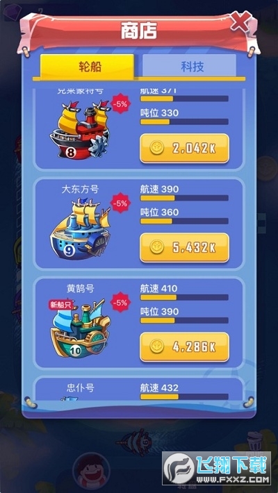 2、每个船只的价格等级都是不同的,用自己的能力去不断的进行升级。