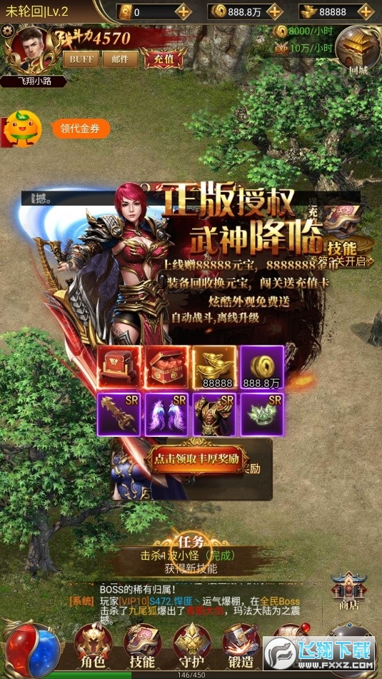 2、登陆立送588万金币,66666绑定元宝,全力打造至尊神装