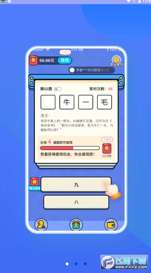 答对一个成语≈0.3元,3毛就能提现,不赚白不赚!