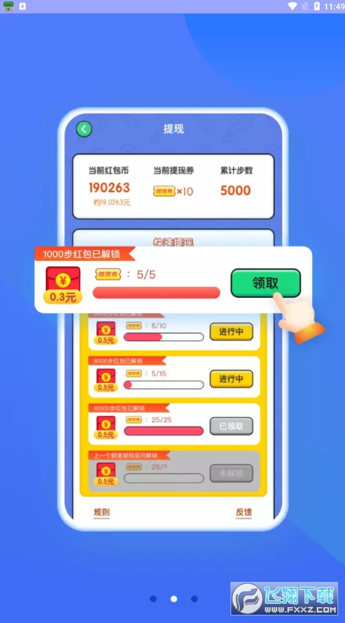 每次闯关成功就会有机会可以获得红包或者金币奖励;