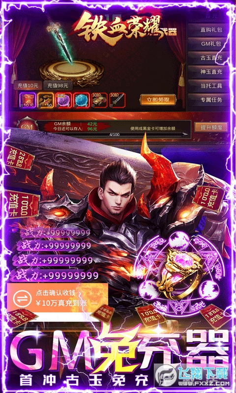 《铁血荣耀(GM免费直充)》是一款类传奇福利版手游,来玩就送GM海克斯科技工具,通过挂机刷BOSS超高概率掉落黑金卡,可在GM后台福利玩法中直接代替RMB充值指定内容,无需充值一直刷一直爽!!
