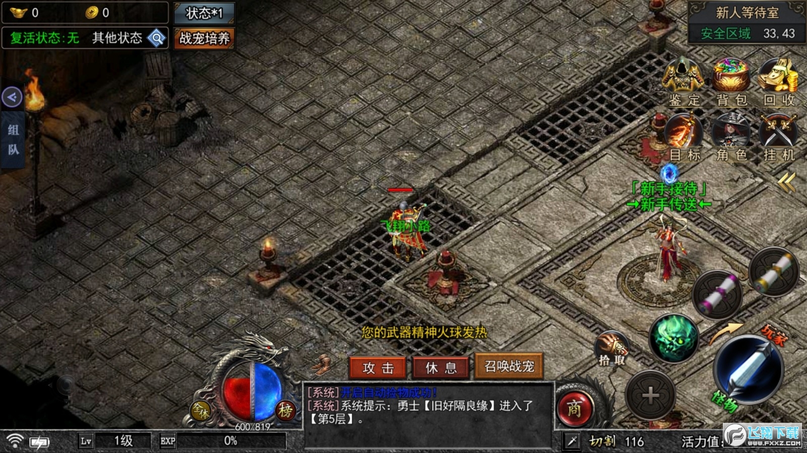 1、快速升级,经验值不断上升,大型多人在线体验传奇手游!